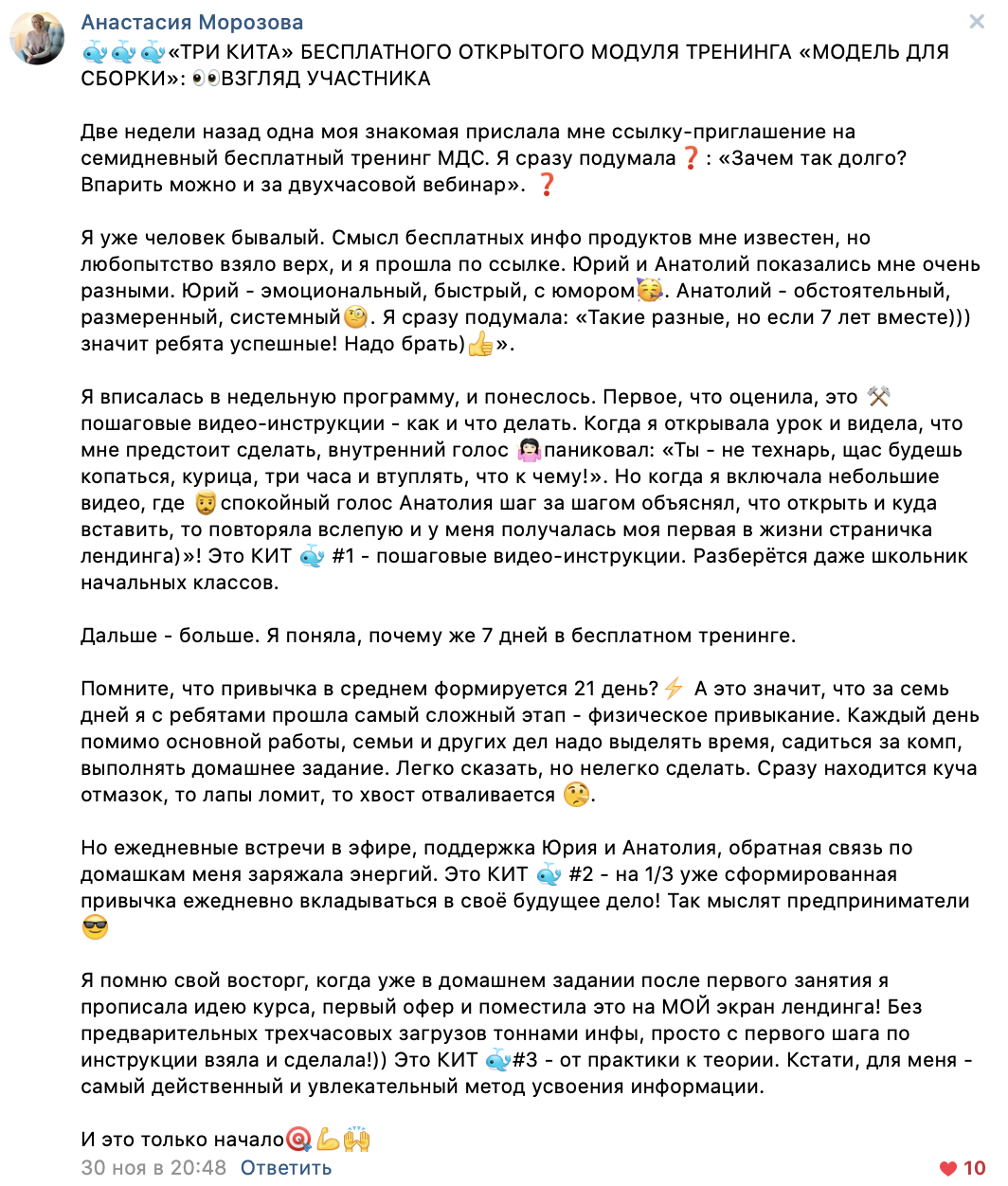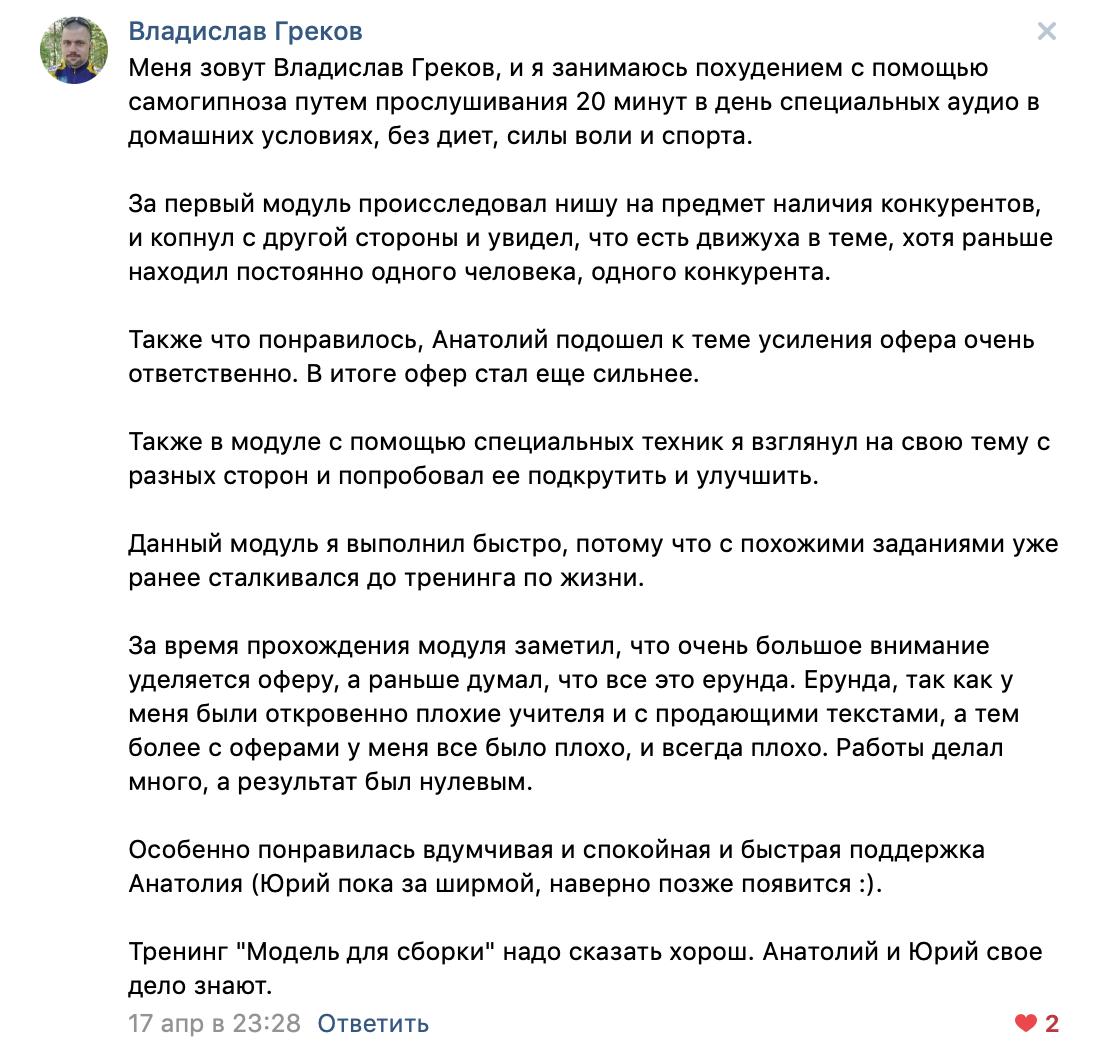 Вы пропишете, какие именно результаты вы можете обещать вашим клиентам