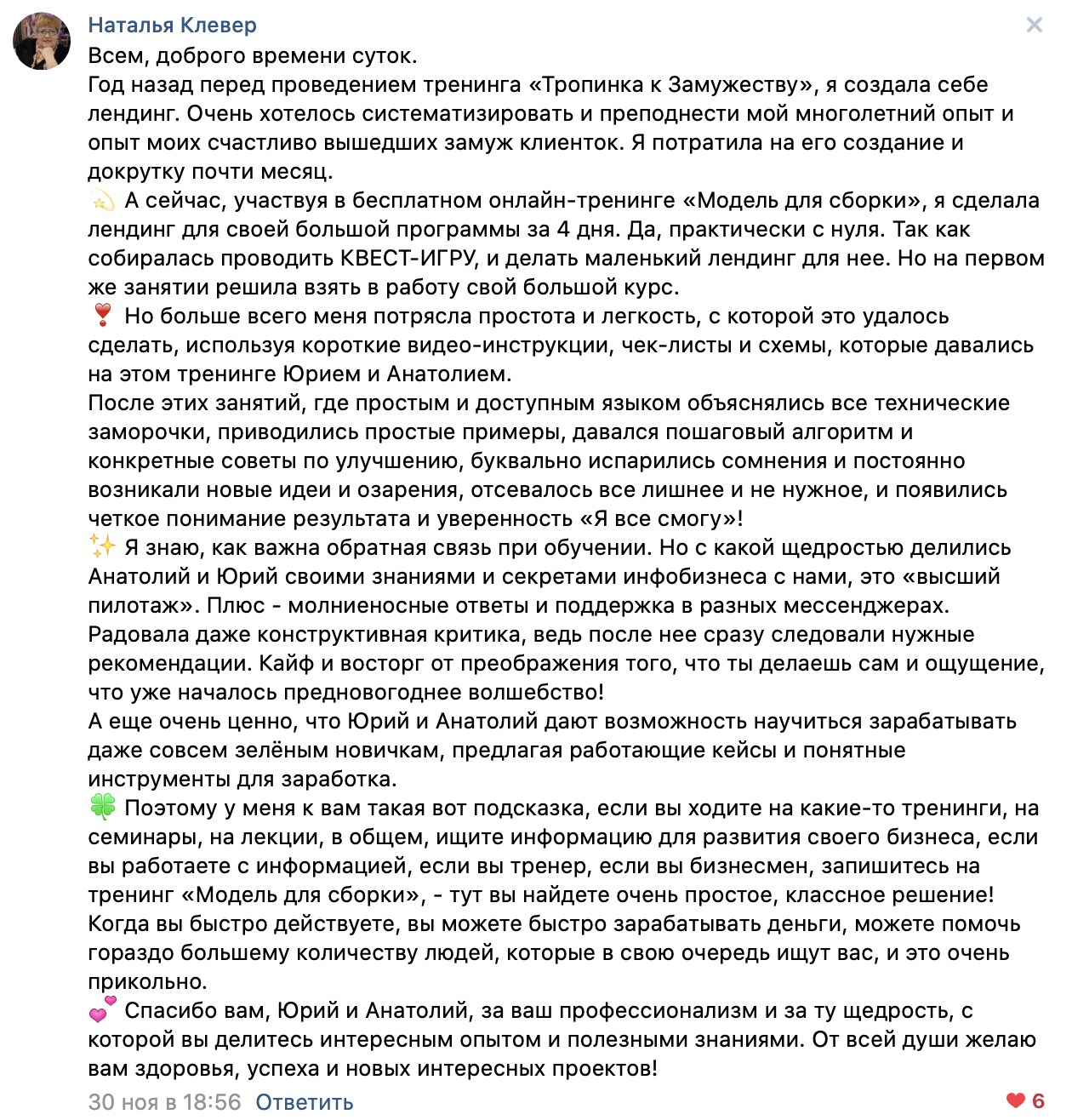 Доступ к записям и материалам тренинга на 6 месяцев