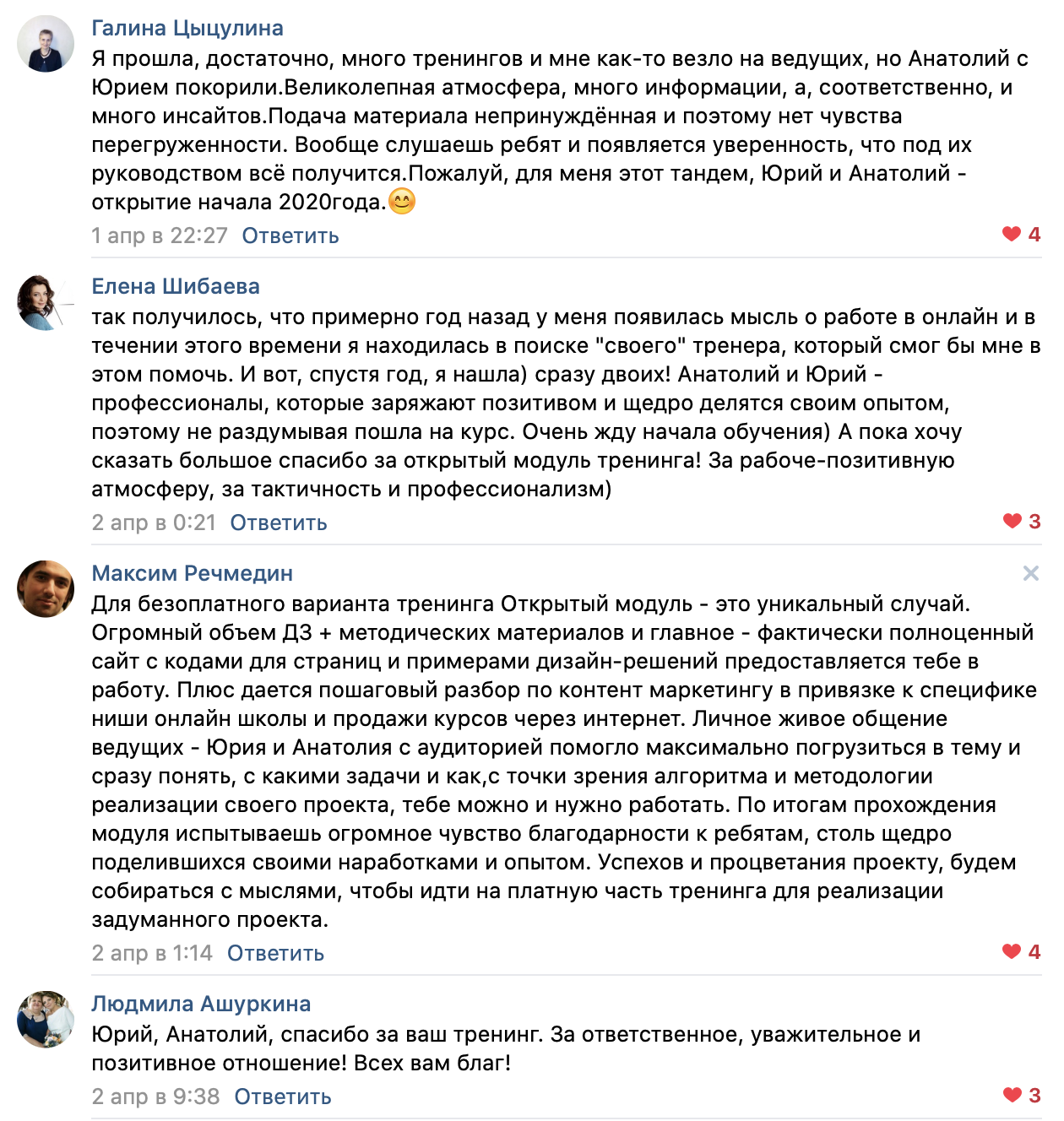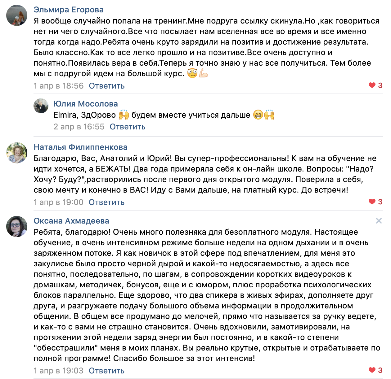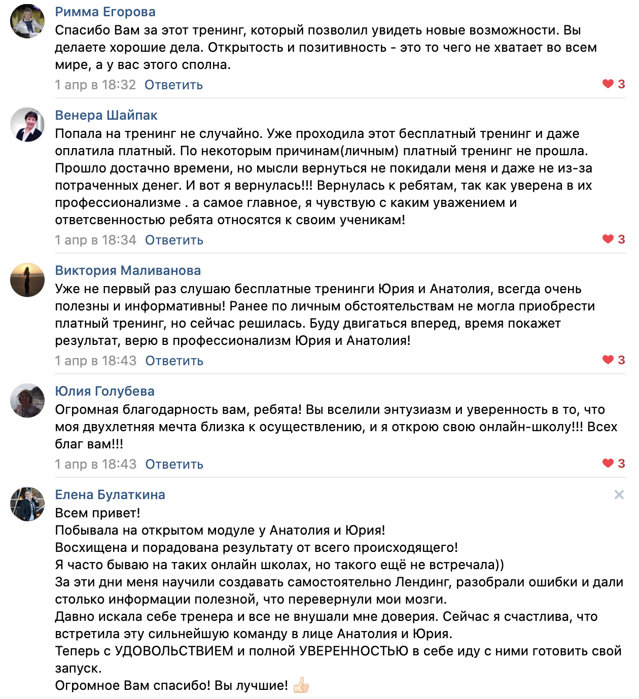 В течение всего тренинга будет работать Telegram-чат с ответами на все ваши текущие вопросы