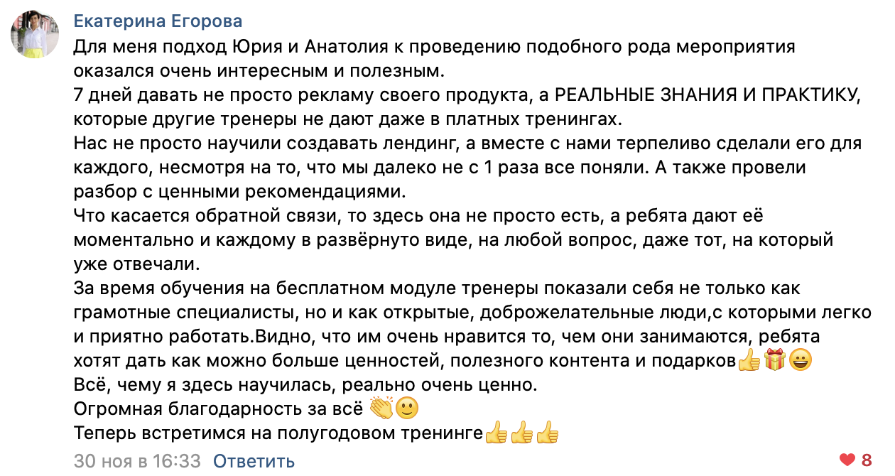 За 7 дней бесплатного тренинга Вы разработаете свой авторский курс. Сделаете продающую упаковку и соберете лендинг (мини-сайт) Вашего курса