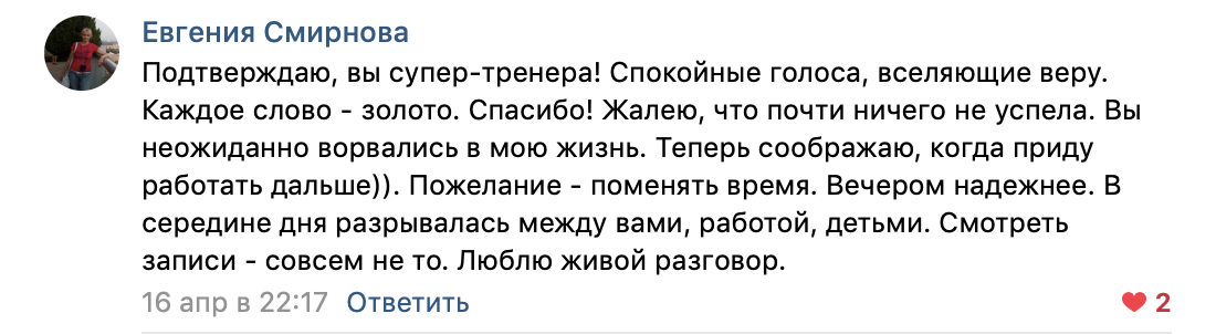 Тариф предполагает только участие онлайн и доступ к записям и доп. материалам на время онлайн-тренинга