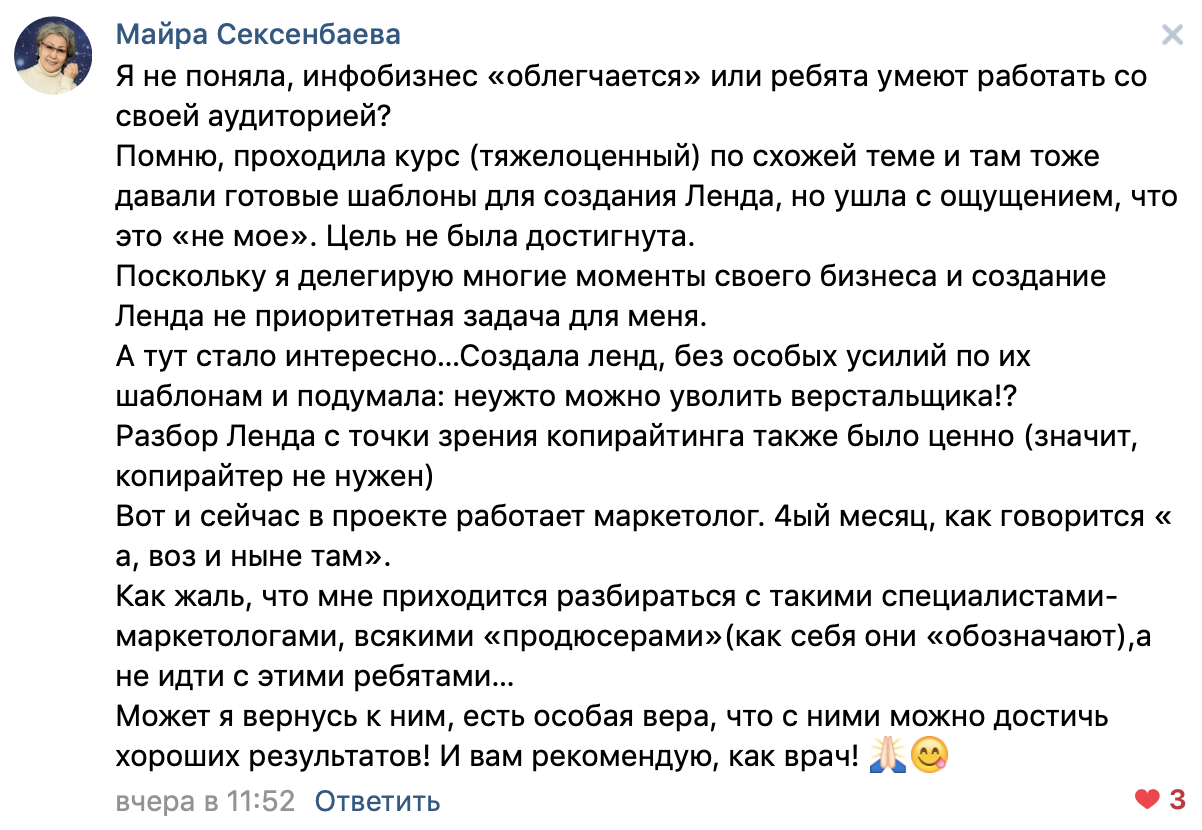Разборы ваших лендингов (одностраничных сайтов) в прямом эфире с рекомендациями по улучшению.