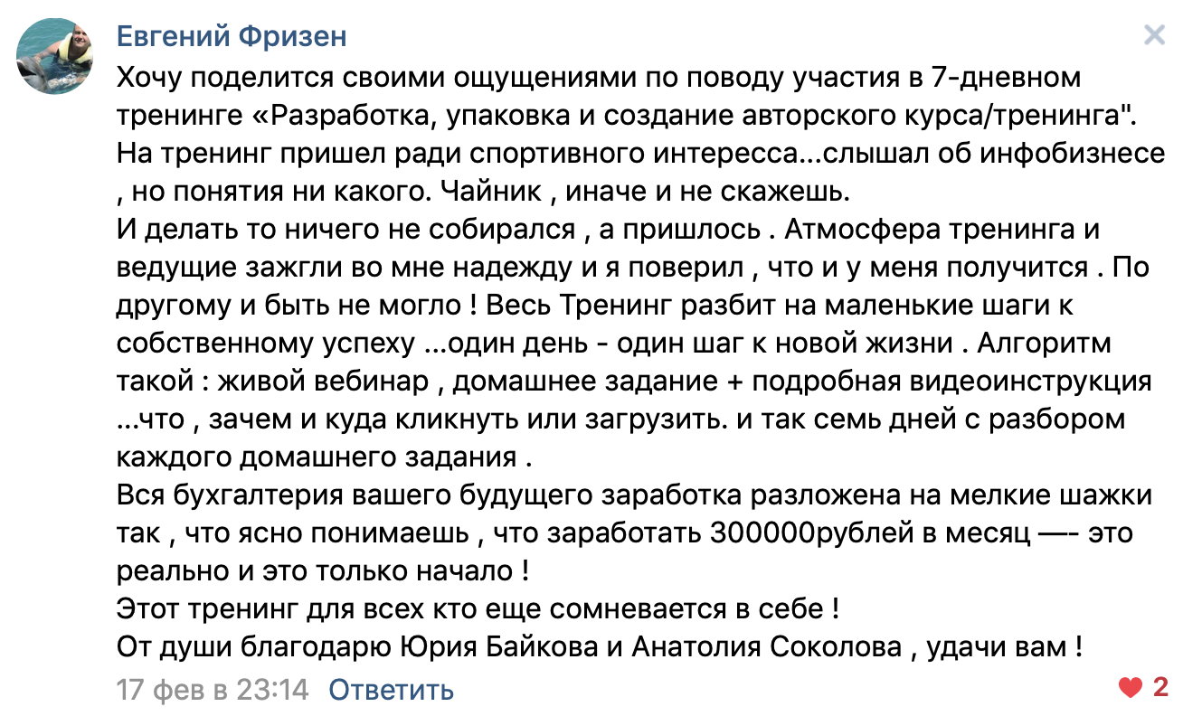 Вы получите четкий пошаговый план запуска продаж вашего курса и выхода на 300+ рублей в месяц.